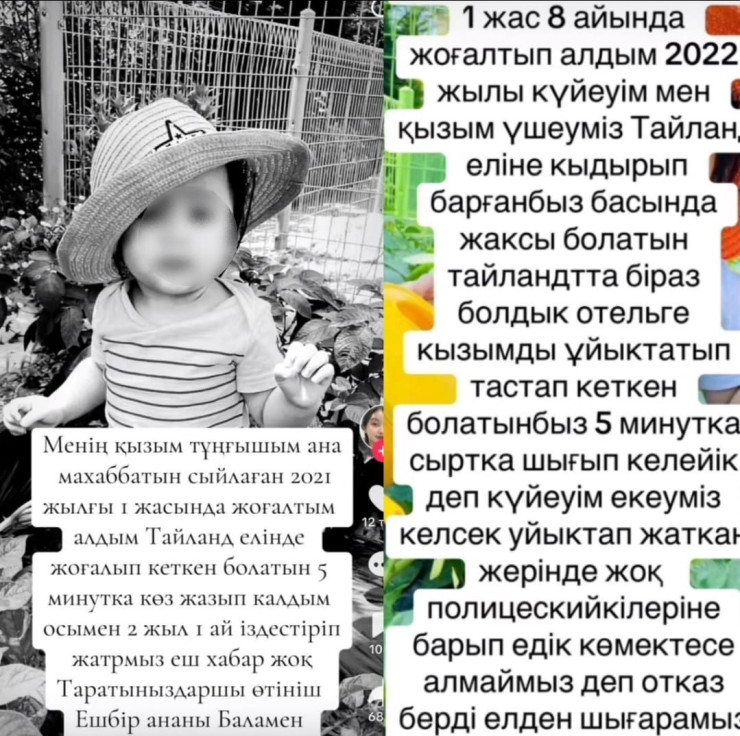 В сети появилась очередная пугающая история о похищении ребенка в Таиланде. В социальной сети TikTok опубликовали пост, автор которого рассказывает о том, что у нее похитили годовалую дочь, передает корреспондент Tengri Travel.