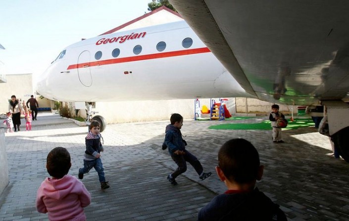 А в грузинском городе Рустави открыли детский сад на борту старого, но полностью исправного самолета Як-42. Автор проекта Гари Чапидзе купил самолет у грузинской компании Georgian Airways и оборудовал для нужд детей, оставив в неизменном виде кабину пилота, 1 500 кнопок и штурвал. В Музее техники в немецком городе Шпайере самолеты стали аттракционами - к ним приделаны горки, и желающим выдаются коврики, на которых можно прокатиться по закрытой железной трубе, словно в аквапарке.