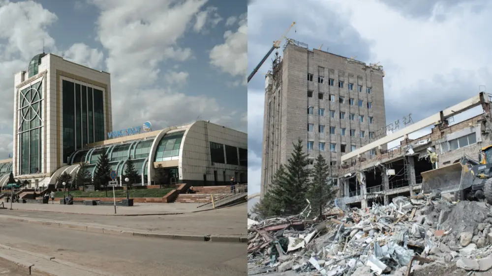 По данным нацкомпании "Қазақстан темір жолы" (КТЖ), ремонт вокзала не проводился много лет. Поэтому пришло время для капитальной реконструкции. Мы побывали на месте и увидели, что функционировавшее недавно здание практически разобрали по частям, от облицовки с большими часами не осталось и следа.