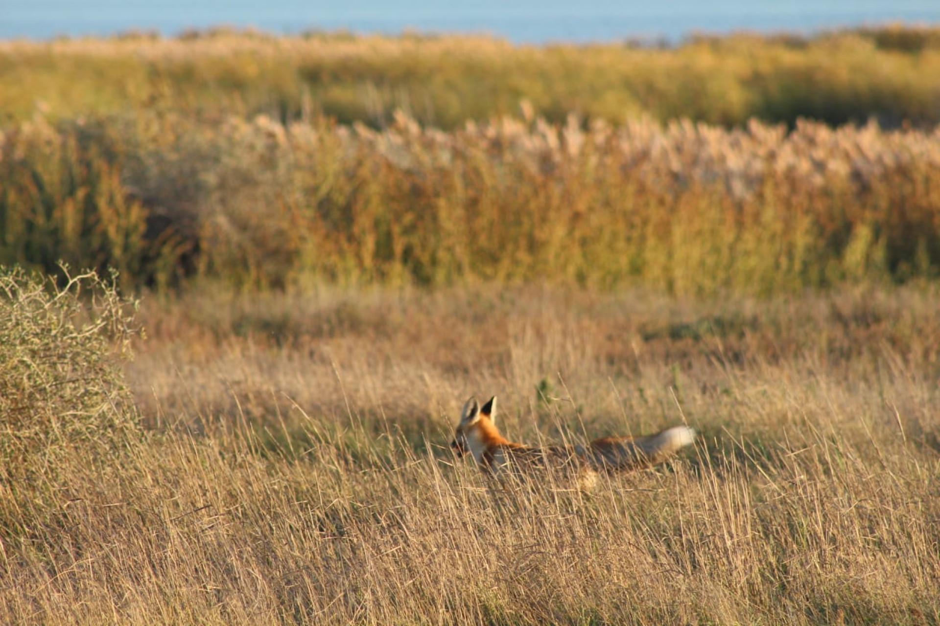 В пресс-службе Коргалжынского заповедника сообщили, что на опубликованных снимках запечатлена обыкновенная лисица (Vulpes vulpes). Авторами фотографий стали инспекторы отдела науки, которые зафиксировали животное во время полевых исследований на территории охраняемой зоны.