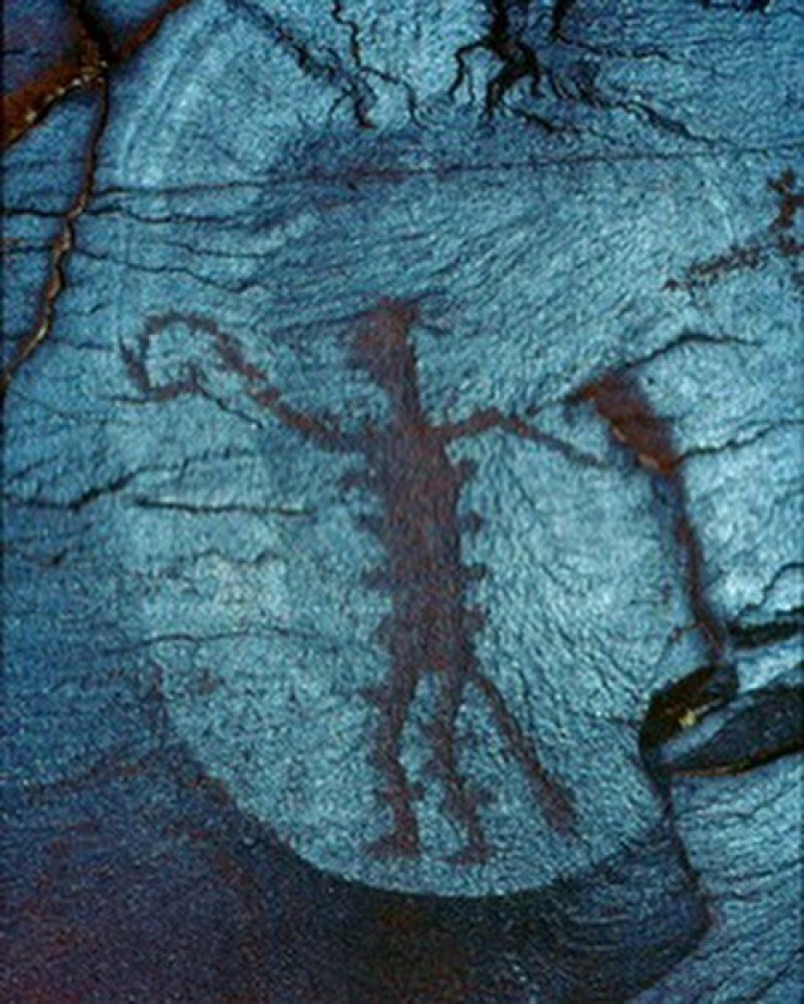 Рисунки животных в "зверином стиле" и сцена боевой пляски воинов с топорами, также расположенные тут, по мнению ученых, были изображены в середине V века до нашей эры.