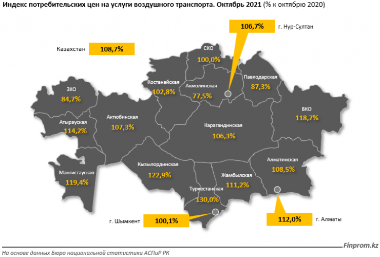 Пассажирские авиаперелеты в Казахстане обогнали показатели "доковидного" 2019 года. Так, по итогам 10 месяцев 2021 года стоимость услуг пассажирского авиатранспорта в стране увеличилась на 8,7 процента, передает Tengritravel.kz со ссылкой на Finprom.kz.