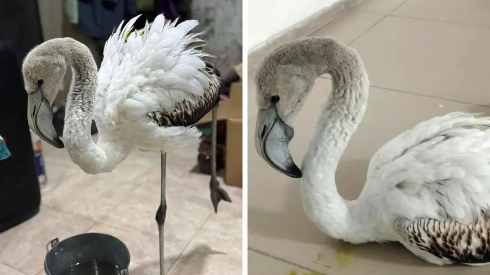 Ранее мы писали, что был обнаружен молодой фламинго, который еще не успел перелинять. Как птица оказалась в одиночестве, остается неизвестным. Начало этой истории можно прочитать по ссылке.