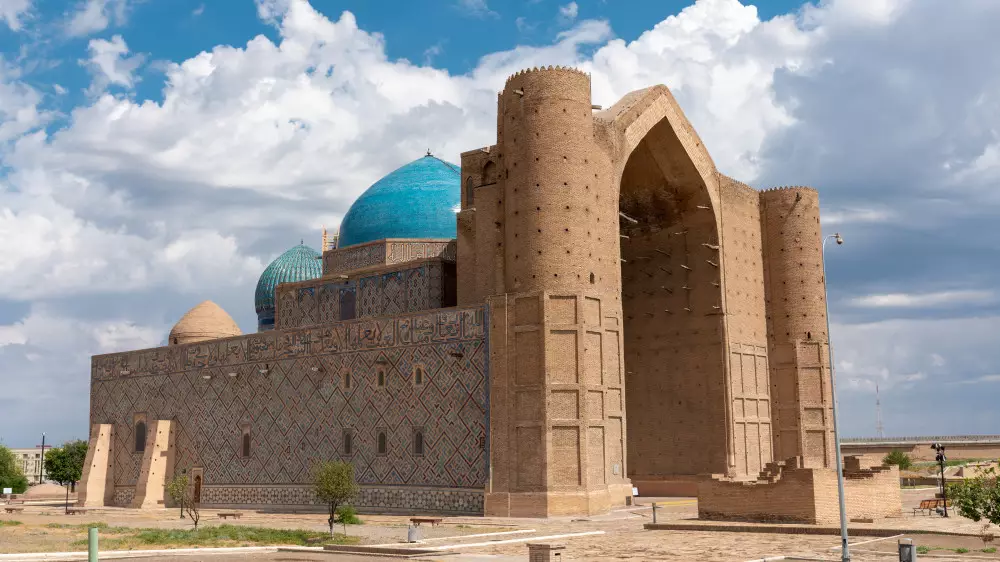 Поездка была краткосрочной, и поэтому мужчина взял такси прямо к мавзолею Ходжи Ахмеда Ясави.