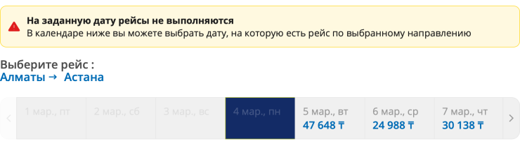 Аналогичная ситуация и с Air Astana, точнее, билеты на рейс уже выкуплены. Отметим, что направление Алматы – Астана является востребованным, по этой причине отсутствие билетов у компании – стандартная ситуация.