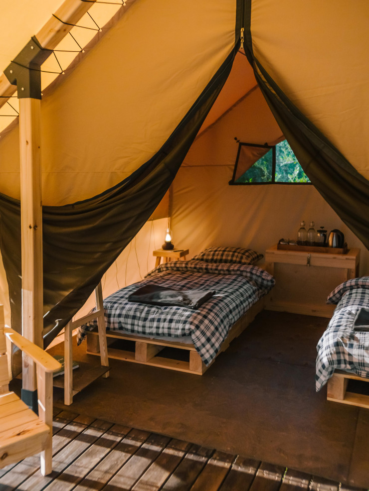 Так, идеальным вариантом станут туристические домики tau tas, предоставляющие возможность комфортно провести время в условиях дикой природы. Палаточный лагерь состоит из 5 сафари-тентов и 5 полноценных модульных домиков и предоставляет комфортные условия и отопление в зимнее время года, что позволяет остаться на ночевку.