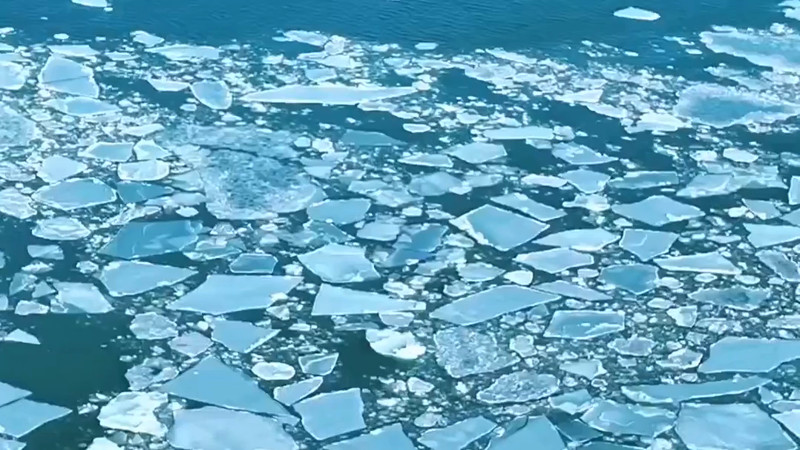 Заледеневший Каспий сняли на видео с высоты птичьего полета