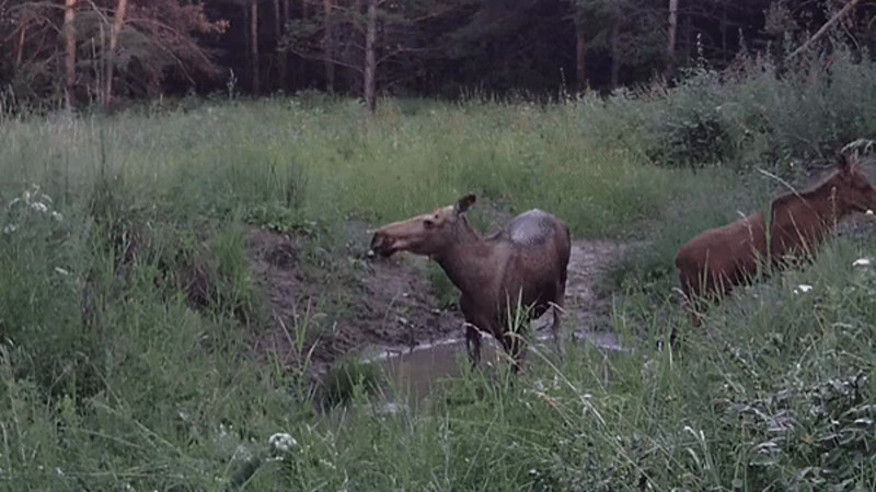 Лосиху с лосенком сняли на видео в Павлодарской области