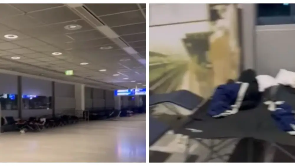Читательница рассказала, что им выдали плед и подушку и рекомендовали искать место в транзитной зоне, а также вручили ваучер на 15 евро.