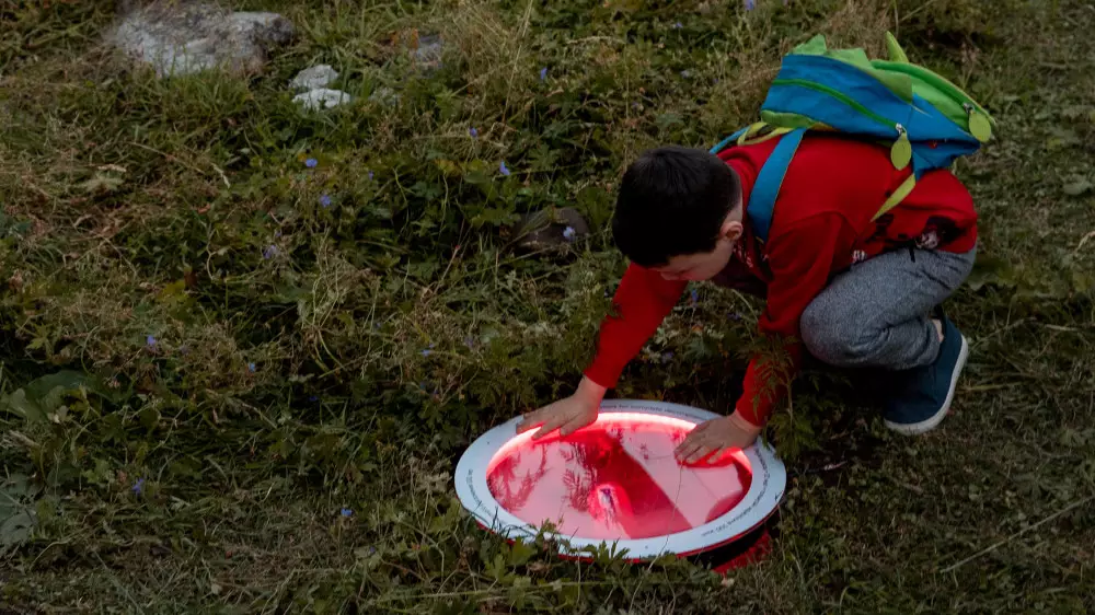 В чаши, установленные на земле, поместили мусор. Там, где могло отражаться голубое небо, лежат банки от напитков, упаковки еды, использованные памперсы и прочий мусор, найденный в окрестностях Аюсая.