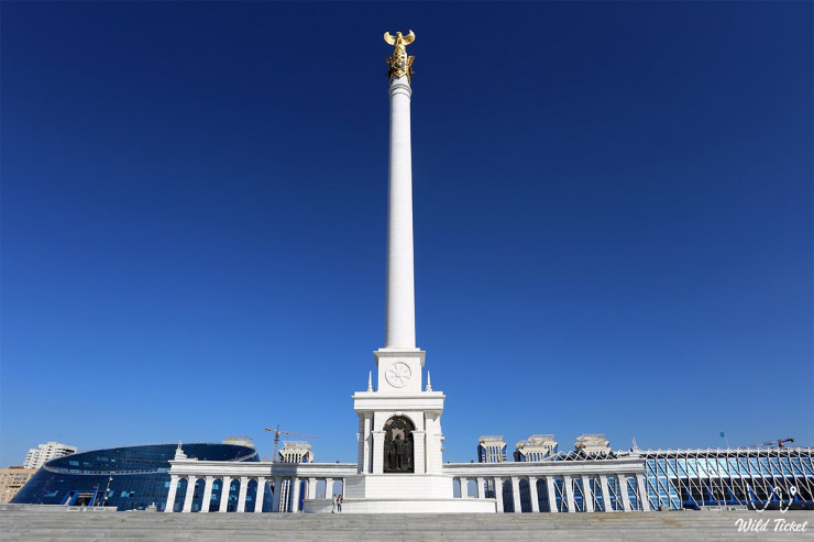 Одна из самых известных достопримечательностей страны посвящена переносу столицы из Алматы в Астану в 1997 году и построена в 2001 году.