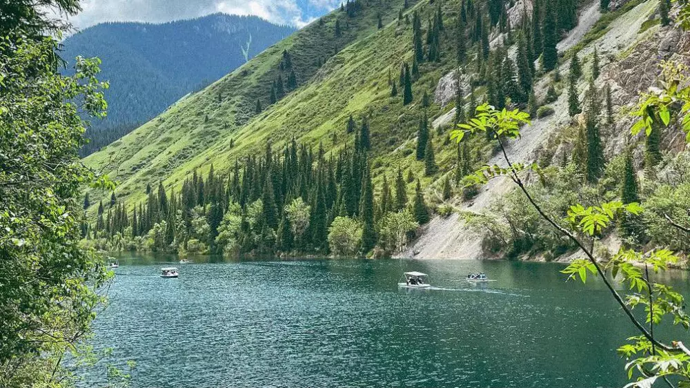 Кольсайские озера – система из трех озер в ущелье Кольсай, а точнее – в перемычке, соединяющей хребты Заилийского и Кунгей Алатау. Озера включают в себя Верхний Кольсай на высоте 2 850 метров, самое крупное Среднее озеро, или Мынжылгы – на высоте 2 252 метра, третье озеро – на высоте 1 818 метров.