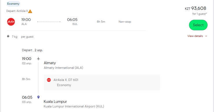 Стали известны условия нового рейса из Алматы в Куала-Лумпур, запуск которого состоялся вчера, передает Tengri Travel.