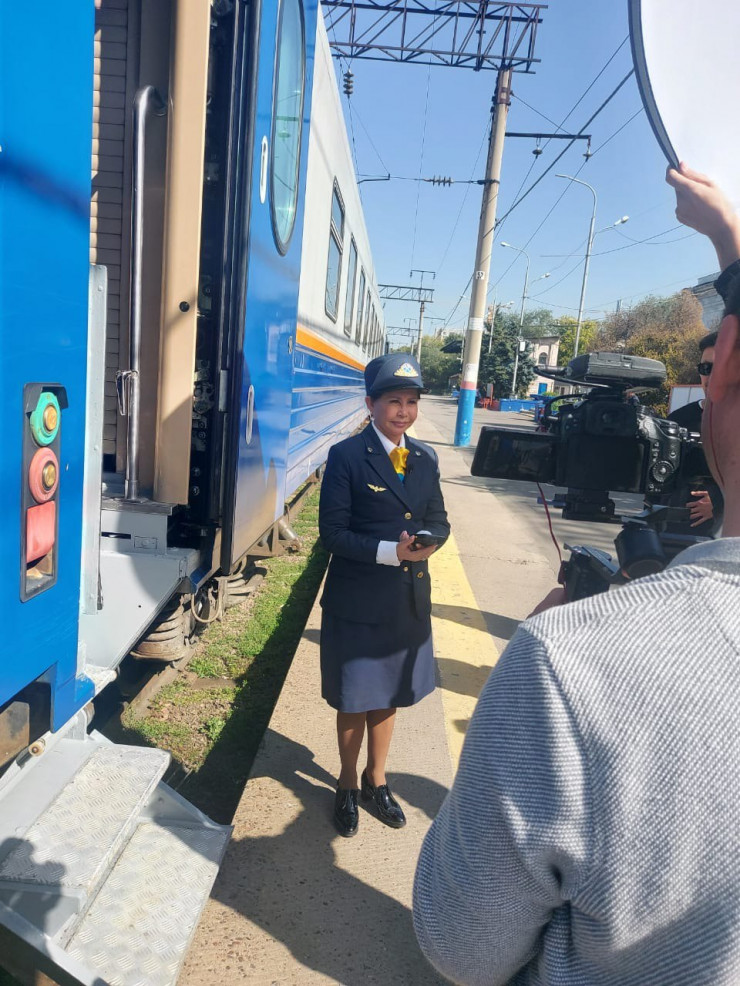 "Съемки были организованы для телеканала. Со стороны КТЖ предоставлен доступ к перрону и поезду, а также форма проводника", - сообщили в КТЖ.