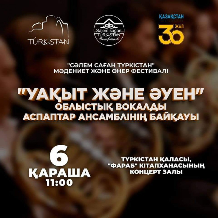 С 1 по 7 ноября в Туркестане пройдет фестиваль исскуств "Сәлем саған, Түркістан!". В рамках недельного фестиваля будет организовано множество праздничных мероприятий. В связи с этим организаторы фестиваля приглашают всех жителей города стать почетными гостями.