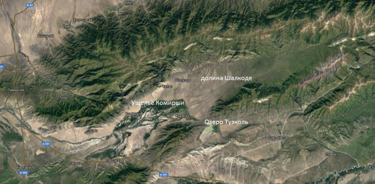 Долина Шалкоде (название с казахского, по разным источникам, переводится как "красивое место", "быстрый скакун" или "ковыльное поле"), там протекает одноименная полноводная река Шалкодысу.