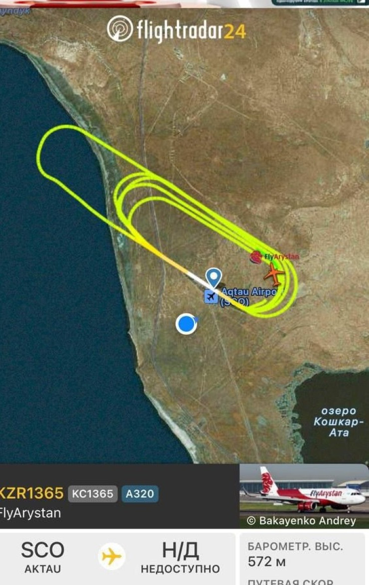 Информация подтвердилась и данными с сервиса Flightradar24, позволяющего в реальном времени наблюдать за положением воздушных судов. Согласно им, самолет компании FlyArystan рейса КС1365 продолжительное время кружил в воздухе.