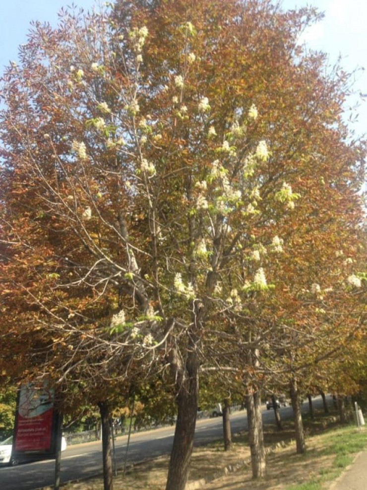 Зацветает каштан обычно во второй половине весны и цветет несколько недель. Однако пару лет назад в Алматы дерево на проспекте Назарбаева зацвело в самый разгар осени - в середине октября. Некоторые жители назвали такую аномалию "чудом" и надеялись, что цветение каштана осенью принесет хорошие новости.