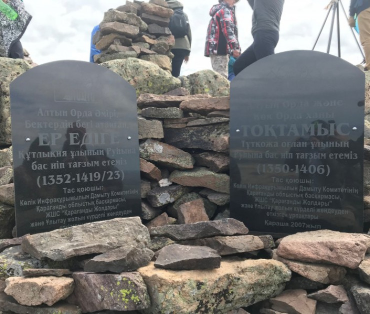 Здесь же погребены хан Золотой Орды Тохтамыш, великий ордынский полководец эмир Едыге. На каменной плите улытауской горы Алтыншокы оставил память о своем пребывании весной 1391 года великий Тамерлан.