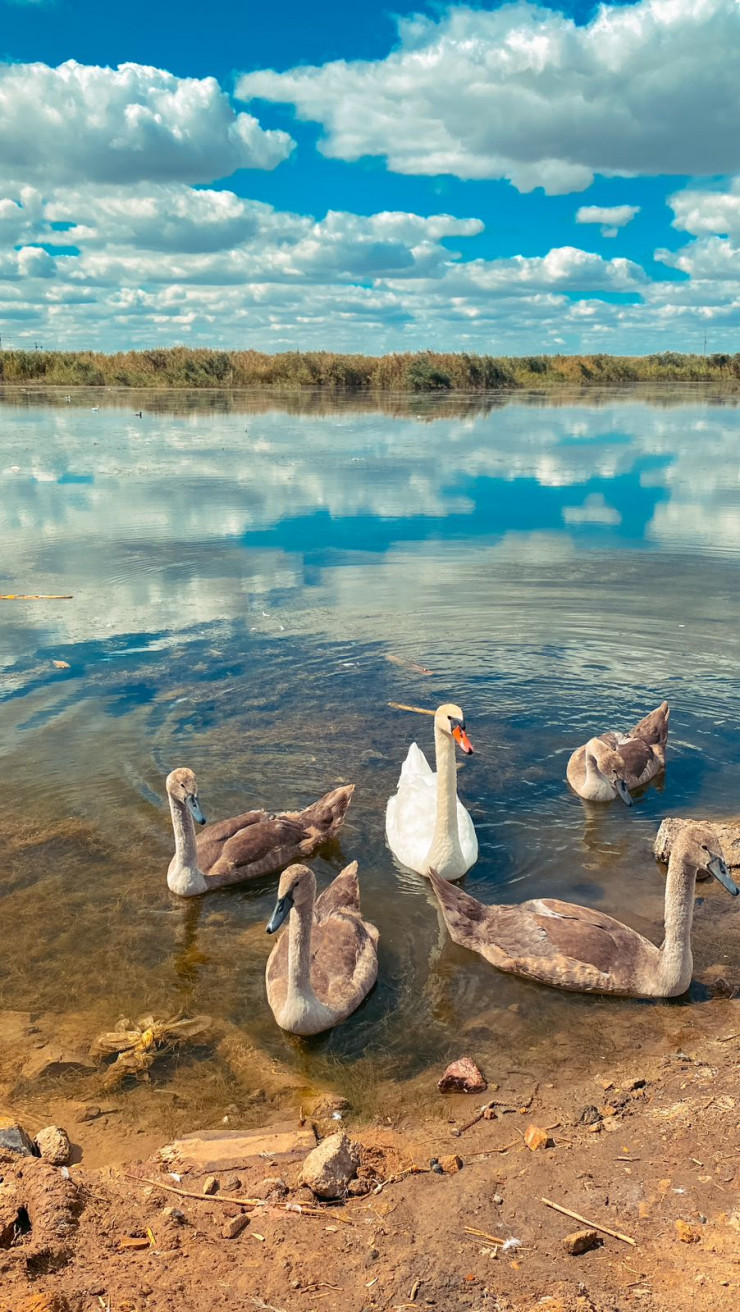 Обосноваться лебединая стая решила на Малом Талдыколе – озере позади Хан-Шатыра. Примечательно, что птицы совершенно не боятся людей и свободно подплывают к берегу в поисках пищи.
