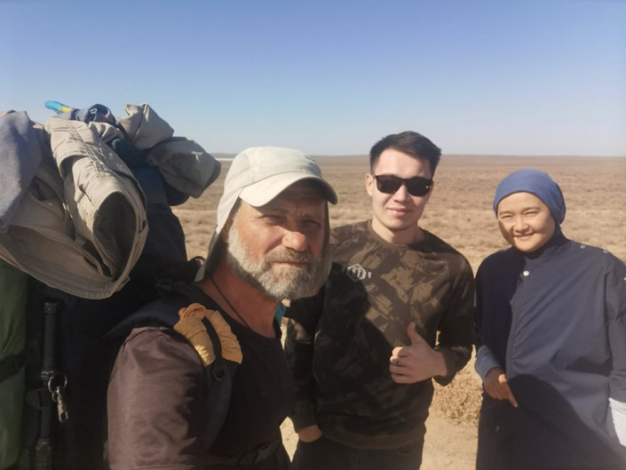 "Друзья называли меня "степным волком", казахстанцы же прозвали "Ходжа", говорят: "Ты же своего рода совершаешь хадж". Все было - провизия заканчивалась, замерзал ночью в минусовую погоду. Одна палатка испортилась, пришлось заменить. Как только обувь стерлась, тут же у местных покупал другую. Однажды ночью чуть не встретился лицом с медведем. Это было в Челябинской области, около реки Урал.