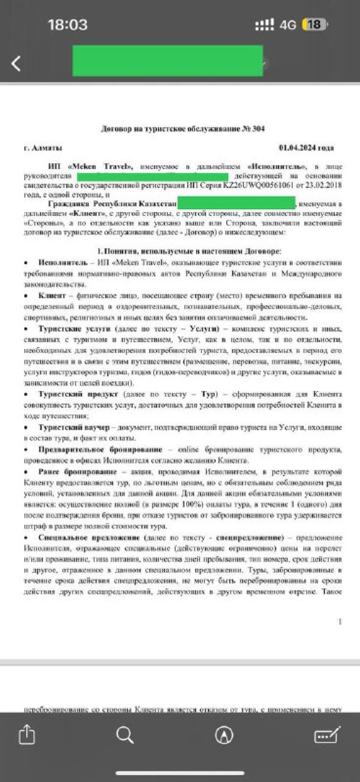 Как рассказала казахстанка, агент выставляла счета на оплату через несколько компаний, среди которых была ИП Meken Travel. Акерке также поделилась, что туристы заключали договор с агентом. Суммы, заплаченные за путевки, варьируются от 500 тысяч до 2 миллионов тенге.
