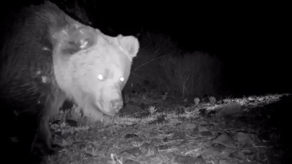 В области Жетысу фотоловушка национального парка "Алтын-Эмель" запечатлела редкого хищника — тянь-шаньского бурого медведя (Ursus arctos isabellinus), передаёт Tengri Travel.