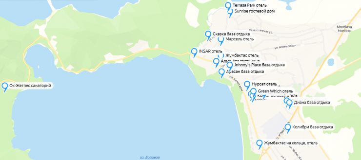 По информации Управления туризма Акмолинской области, наиболее популярные объекты размещения в Боровом: отели Rixos, Edem, Terrassa Park, Park House Kokshetau и санаторий "Ок-Жетпес". Мы расскажем вам о них и еще о нескольких.