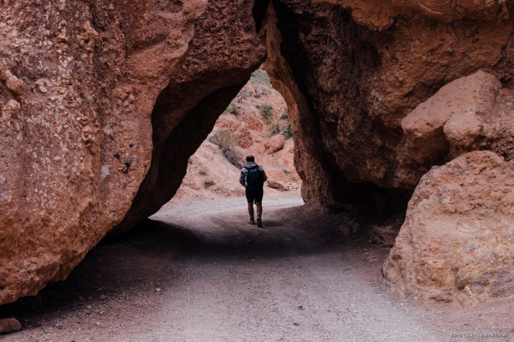 "Мы в Долине замков, одном из пяти каньонов национального парка Чарынский каньон. После дороги, которая лежала через равнины, тянущиеся настолько далеко, насколько хватает глаз, необычно видеть окончание плоской земли. Вместо этого огромные плиты красного песчаника поднимаются из ущелья глубиной в 90 метров,. Это гигантский город-небоскреб, высеченный из скалы. (...) Я иду по крутой тропе к подножию каньона, проводя руками по красной и серебристой земле, появившейся благодаря реке Чарын 12 миллионов лет назад. Больше всего меня поражает тишина: она такая тихая, что я слышу, как стучит мое сердце и свистит ветер между камнями", - пишет Джессика.