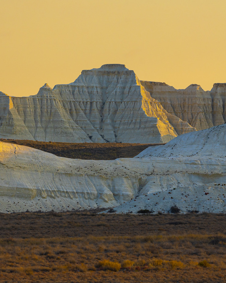 "Актолагай находится в Актюбинской области, на границе с Прикаспийской низменностью. Высокие, до 300 метров, меловые скалы возвышаются посреди степи. Интересная особенность гор – изменение цвета в зависимости от освещения.