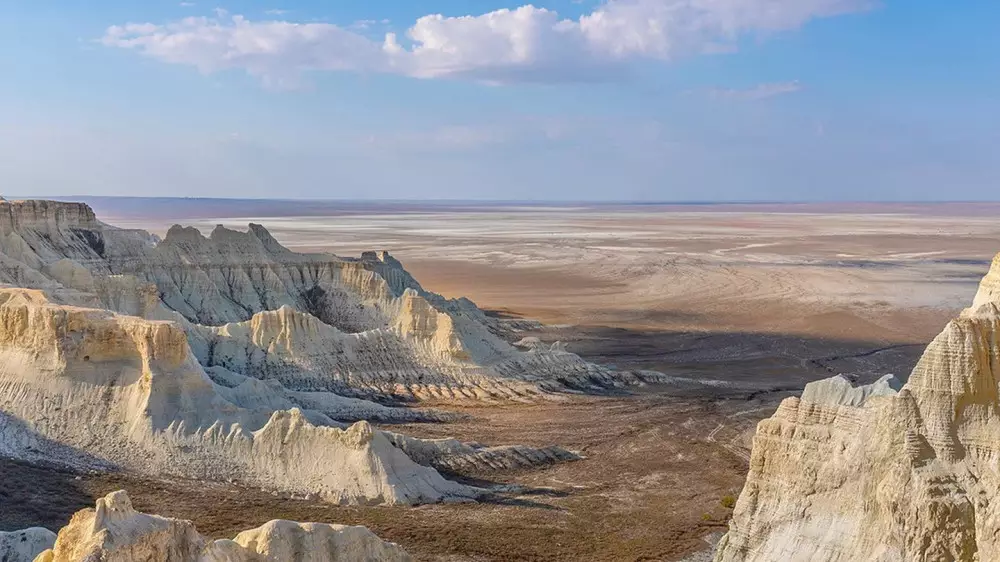 "Актолагай находится в Актюбинской области, на границе с Прикаспийской низменностью. Высокие, до 300 метров, меловые скалы возвышаются посреди степи. Интересная особенность гор – изменение цвета в зависимости от освещения.