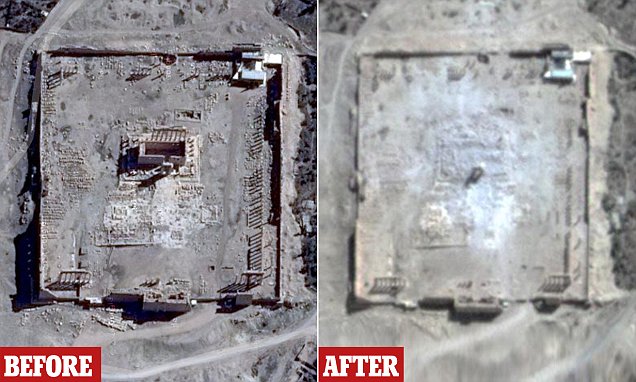 Ранее ученые полагали, что масштабы действий боевиков не столь катастрофичны для античной постройки. Однако на снимках хорошо видно, что храм практически полностью разрушен.