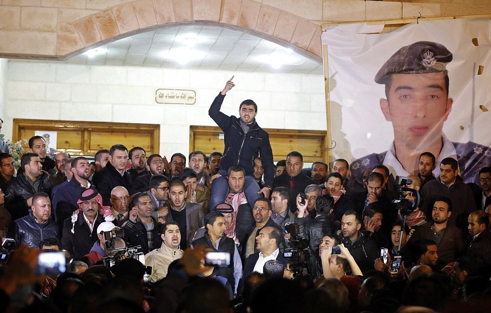 После известия о гибели пилота свой визит в США прервал король Иордании Абдалла II. Монарх назвал казнь Муаза аль-Касасбеха актом "трусливого террора". "Это (убийство пилота) - акт "трусливого террора" со стороны криминальной группы, которая не имеет отношения к исламу", - сказал Абдалла II, выступая по местному телевидению. Король призвал население объединиться в борьбе с терроризмом, заявив, что "иорданский пилот погиб, защищая свою веру и Родину. Иорданцы обязаны сплотиться воедино".