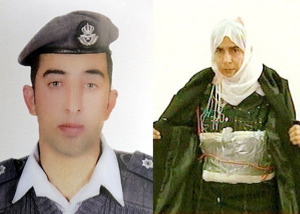 Боевики предлагали обменять пилота Муаза аль-Касасбеха на смертницу Саджиду ар-Ришауи (справа). © AFP