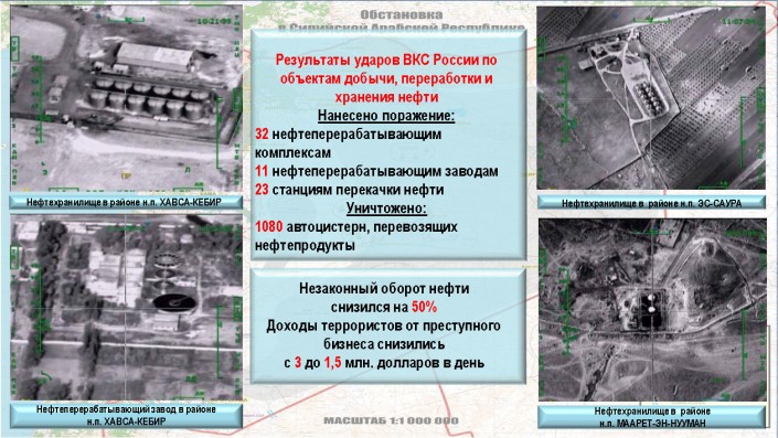 Как заявил заместитель министра обороны РФ Анатолий Антонов, доходы от продажи нефти являются одним из важнейших источников деятельности террористов в Сирии. "Они зарабатывают около двух миллиардов долларов ежегодно, расходуя эти средства на наем боевиков по всему миру, оснащение их оружием, техникой и вооружением. Вот почему ИГИЛ (ДАИШ) так оберегает инфраструктуру воровской нефтедобычи в Сирии и Ираке", - заявил Антонов.