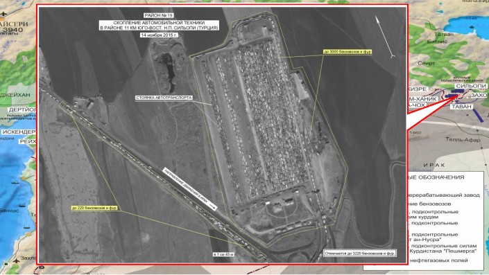 В свою очередь начальник Главного оперативного управления Генштаба ВС РФ Сергей Рудской сообщил, что у них есть неопровержимые доказательства причастности Турции к этому бизнесу. Он обнародовал часть имеющихся данных, вскрывающих всю цепочку поставок нефтепродуктов из Сирии в Турцию - от добычи, до пунктов переработки.