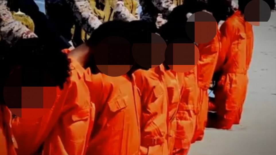 Затем палач в маске и с пистолетом говорит, что христиане обязаны перейти в ислам или заплатить специальную дань, предписываемую Кораном. Далее следуют кадры расстрела и обезглавливания пленников.