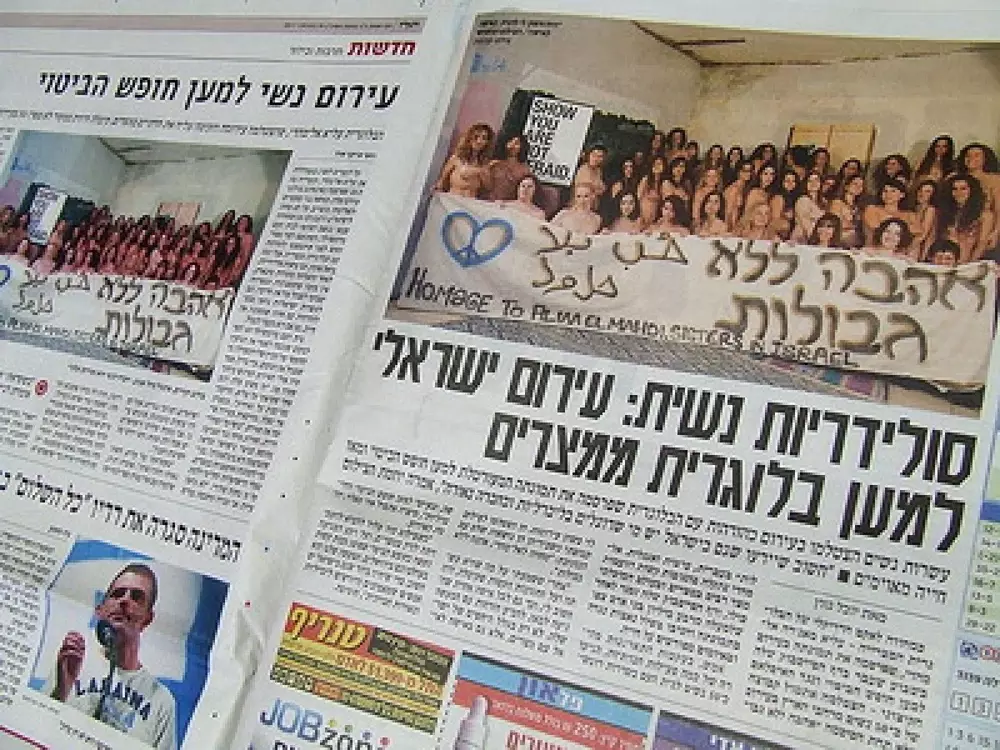 Около 50 израильтянок собрались на бульваре Ротшильда (Тель-Авив), чтобы обнажиться в поддержку египтянки Алии Магды Эль-Махди, которая положила начало "голой революции" в соцсетях, сообщает NEWSru.co.il. Идея этой акции принадлежит 28-летней Ор Теплер. Она распространила свой призыв через социальную сеть. "У нас есть возможность совершить нечто большое и оказать поддержку женщине, похожей на нас: молодой, амбициозной, полной надежд и, по-видимому, обладающей чувством юмора. Девочки, давайте предоставим миру шанс увидеть красоту обнаженных дочерей Израилевых", - написала Теплер в своем обращении. На призыв откликнулись более ста девушек, но на акцию пришли лишь пятьдесят "моделей". Зал, в котором проходила фотосессия, смог вместить только 40 человек. Теплер сообщила, что среди них не было ни одной нудистки, и многие начали смущаться и отказались раздеваться полностью. В итоге девушки частично прикрылись плакатом с надписью "Любовь без границ". Снимок был опубликован во всех ведущих израильских газетах, и даже показан по телевидению. Напомним, 20-летняя студентка из Каира Алия Магда Эль-Махди 23 октября этого года опубликовала в своем блоге серию фотографий, на которых она была изображена полностью обнаженной. Девушка говорит, что готова бороться с исламистской цензурой любой ценой. В одной из записей она назвала свои действия "криком против насилия, расизма, половой дискриминации, сексуальных домогательств и лицемерия". В течение месяца эротические снимки просмотрели более 3 миллионов человек. Идеей "голой революции" заинтересовалась молодежь из Ливана, Сирии, Ирака и других арабских стран.