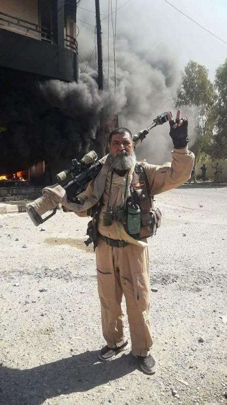 Пользователи социальных сетей в Ираке распространили видео, на котором известный снайпер на вопрос своего однополчанина о том, сколько членов ДАИШ ему удалось уничтожить, отвечает - 321. Самыми известными прозвищами погибшего ополченца, как сообщают члены "Аль-Хашд аш-Шааби", были Шейх Снайперов, Соколиный Глаз и Охотник за Игиловцами.