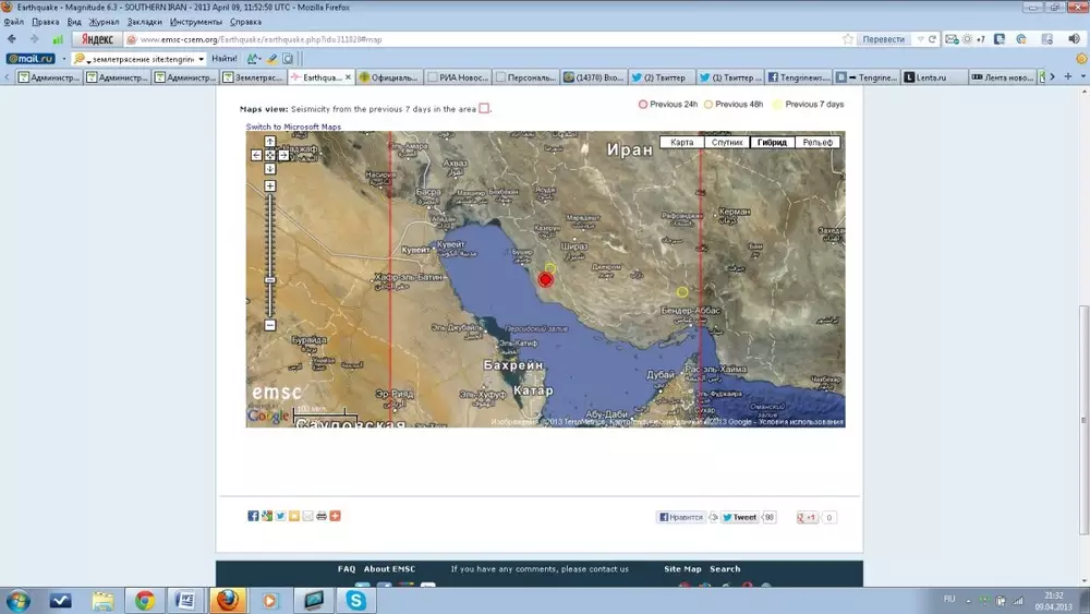 Землетрясение магнитудой 6,3 произошло в Иране 9 апреля. Эпицентр находился в 91 километре от города Бушер, в окрестностях которого находится атомная электростанция. Очаг подземных толчков залегал на глубине 10 километров. Вслед за первыми толчками были зафиксированы несколько афтершоков - самый мощный из них магнитудой 5,4.