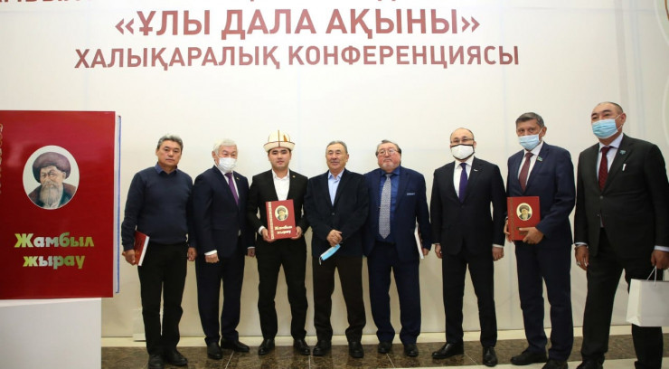 В рамках конференции состоялась презентация книги "Жамбыл жырау". В нем собраны ранее не изданные айтысы Жамбыла с кыргызскими поэтами, стихи, исследования ученых соседней страны, найденные в архивах Национальной академии наук и библиотеки Кыргызской Республики.