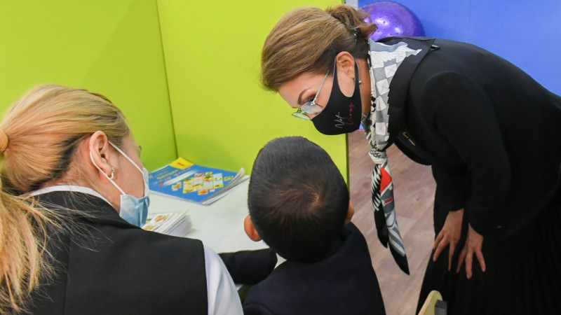 В КПИ Дарига Назарбаева познакомилась с детьми, побеседовала с их индивидуальными ассистентами (тьюторами).