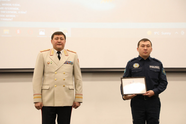 Традиционно в честь праздника ветераны ОВД и отличившиеся сотрудники награждены медалями, грамотами и благодарственными письмами приказом министра МВД РК, от имени акима города Нур-Султана, а также приказом начальника столичного Департамента полиции за добросовестное исполнение служебного долга.