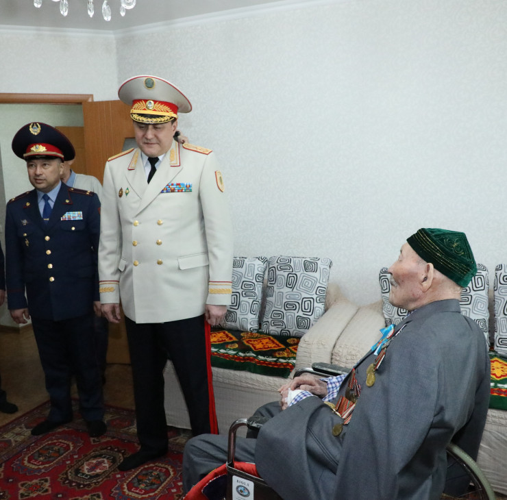 В преддверии празднования 77-летия Победы начальник Департамента полиции Нур-Султана генерал-майор Марат Тулебаев посетил на дому 95-летнего ветерана Великой Отечественной войны Мустафина Утюна Мукановича. Крепкого здоровья и долгих лет жизни пожелал участнику войны министр внутренних дел РК Марат Ахметжанов в своем видеообращении.