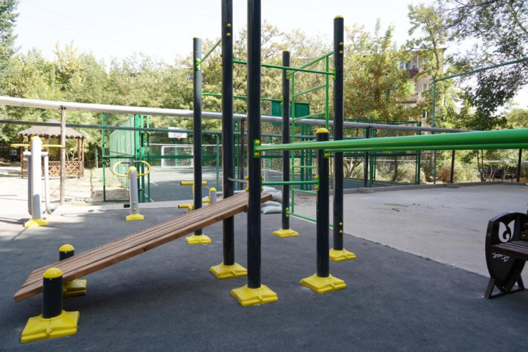 В Шымкенте строятся современные спортивные детские площадки, а старые модернизируются. Глава города Мурат Айтенов ознакомился с обустроенными тренажерами и спортивными площадками во дворах многоэтажных домов по улице Туркестанская Аль-Фарабийского района и встретился с жителями.