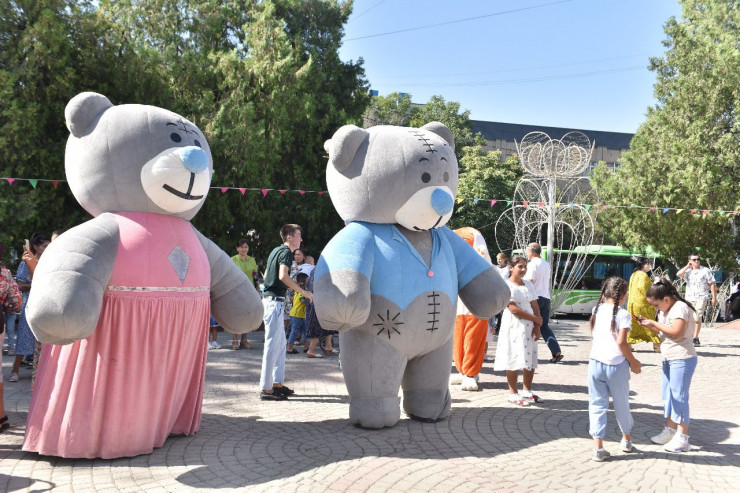 Перед Домом дружбы при АНК выступили ансамбль хореографического танца "Айголек" Дворца школьников, группа певцов "Алтын ғасыр", куклы-аниматоры, другие артисты. Затем дети повесились на батуте, покатались на машинках, полакомились сладостями.