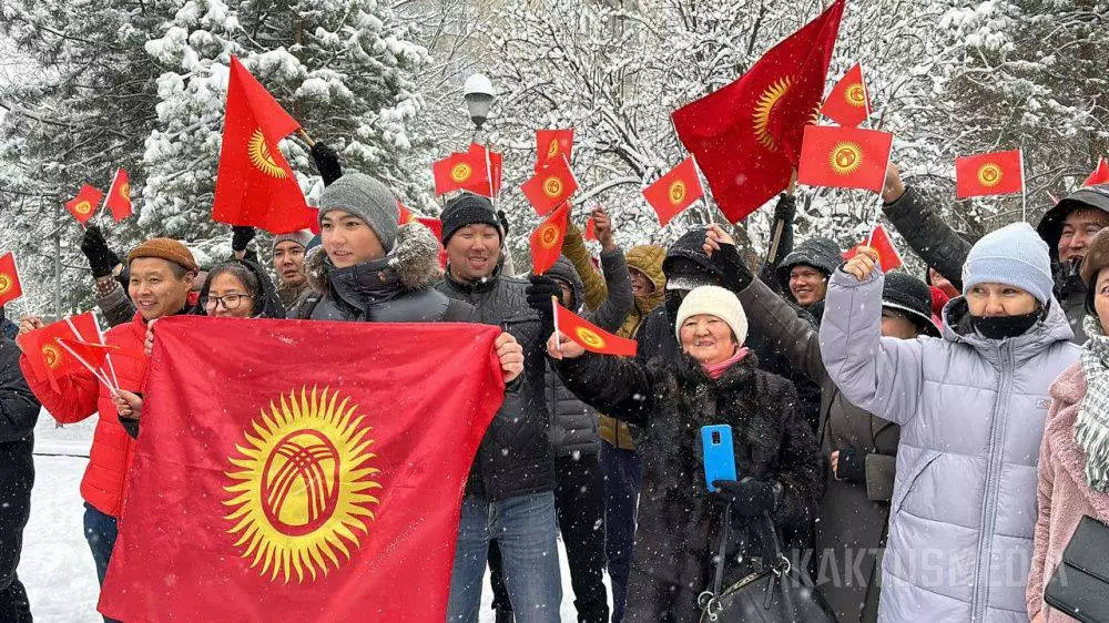 Акция протеста против измнения флага проходит в Бишкеке. Несмотря на снегопад и задержания, количество участников акции растет, передает Tengrinews.kz со ссылкой на Kaktus.media