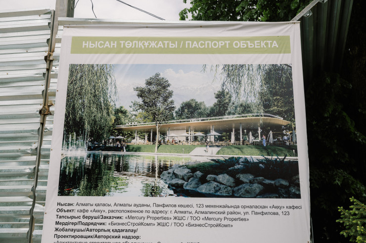 "Участок севернее улицы Богенбай батыра, западнее улицы Панфилова, на месте бывшего кафе "Акку", принадлежит ТОО Mercury Properties. Целевое назначение участка - для строительства и эксплуатации объектов общественного питания, торговли и сферы услуг. Площадь земельного участка - 0,1357 гектара. Спроектированное здание занимает ту же площадь на участке, что и сгоревшее кафе. Управлением городского планирования и урбанистики выдано архитектурно-планировочное задание и согласован эскизный проект. Таким образом, на месте бывшего "Акку" будет построено равноценное место общественного питания", - сообщили в ведомстве.