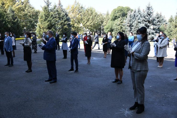 "Глава государства особо отметил ваш труд, чему доказательство данная награда "Халық алғысы" - народная благодарность. Ваш труд, который был внесен в борьбе с пандемией, огромен", - сказал Бабакумаров, отметив важность единства и сплоченности в дальнейшей работе.