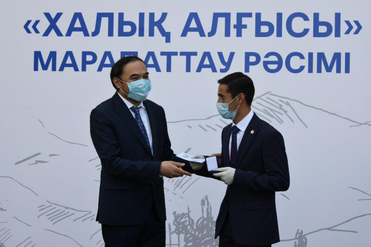 Заместитель акима Алматы Ержан Бабакумаров от имени Президента Казахстана Касым-Жомарта Токаева вручил медаль "Халық алғысы" медработникам, волонтерам, общественникам и работникам СМИ, активно задействованным в общей работе города и страны по борьбе с пандемией коронавируса.